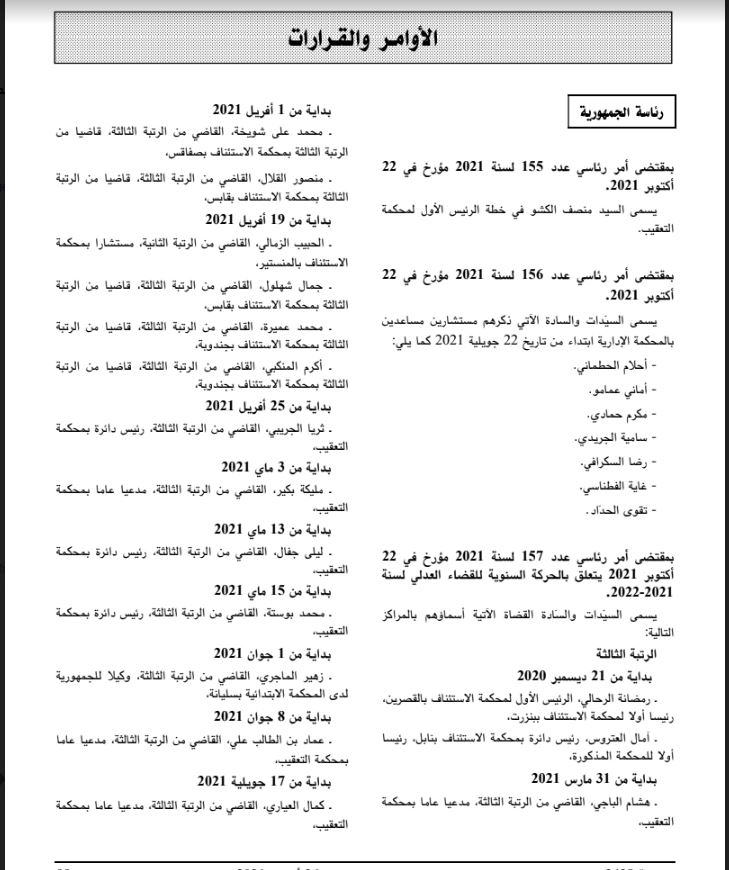 بمقتضى أمر رئاسي عدد 155 لسنة 2021 مؤرخ في 22 أكتوبر 2021، تمت تسمية منصف الكشو في خطة الرئيس الأول لمحكمة التعقيب، وفق جاء في الرائد الرسمي للجمهورية التونسية الصادر اليوم الثلاثاء 26 أكتوبر2021.
