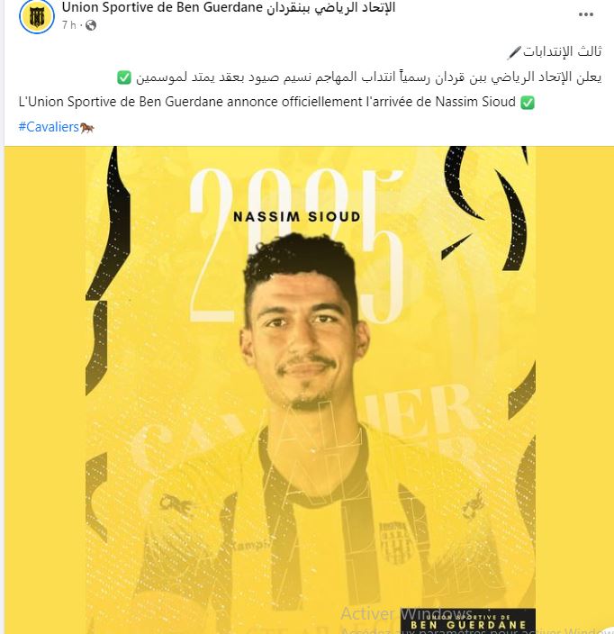 يعلن الإتحاد الرياضي ببن قردان رسمياً انتداب المهاجم نسيم صيود بعقد يمتد لموسمين