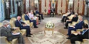 استقبل رئيس الجمهورية قيس سعيّد، اليوم الإثنين 17 أوت 2020 بقصر قرطاج، كلا من السيّد لويجي دي مايو، وزير الخارجية والتعاون الدولي الإيطالي، والسيدة لوتشيانا لامورجيزي، وزيرة الداخلية الإيطالية، والسيد أوليفر فاريلي، المفوض الأوروبي المكلف بالتوسع وبسياسة الجوار الأوروبية، والسيدة يلفا يوهانسون، المفوضة الأوروبية المكلفة بالشؤون الداخلية، الذين يؤدون حاليا زيارة عمل إلى بلادنا في إطار متابعة مختلف ملّفات التعاون ومن أبرزها دفع الاستثمار والتنمية المتضامنة وتعزيز التعاون الأمني والقضايا المرتبطة بالهجرة.