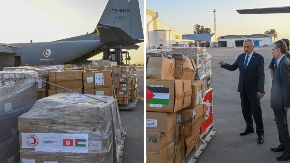 تنفيذا لتعليمات رئيس الجمهورية قيس سعيد، أقلعت، صباح اليوم الأحد 15 أكتوبر 2023، طائرة عسكرية أولى محملة بحوالي 12 طن من المستلزمات الطبية والصحية وحليب الأطفال موجهة لفائدة الشعب الفلسطيني الشقيق وفق بلاغ لرئاسة الجمهورية