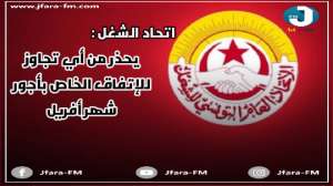 وحذّرت المنظمة الشغيلة لأيّ تجاوز لمضمون اتّفاق 14 أفريل 2020 ومن المساس بحقوق العمّال، مضيفة أنها لن تتوانى عن اتّخاذ القرارات الضرورية لمنع ذلك، داعية كافّة الهياكل النقابية إلى الحرص على متابعة ذلك.