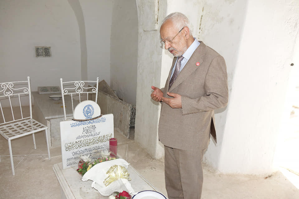 زار رئيس حركة النهضة راشد الغنوشي بعد ظهر اليوم الإثنين تربة آل قائد السبسي بمقبرة الجلاز لتلاوة فاتحة الكتاب على رئيس الجمهورية التونسية السابق الباجي قائد السبسي بمناسبة حلول الذكرى الثالثة لوفاته.