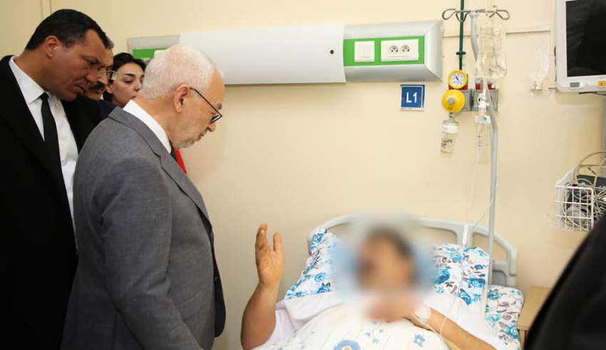 الغنوشي يعود المصابين في العمليّة الإرهابية (صور)