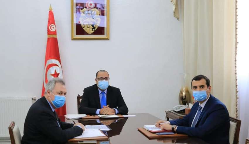 تحادث رئيس الحكومة هشام مشيشي مساء اليوم الجمعة 08 جانفي 2021 مع بعثة خبراء صندوق النقد الدولي، عبر تقنية التواصل عن بعد. بحضور وزير الاقتصاد والمالية ودعم الاستثمار علي الكعلي والمستشار الاقتصادي لرئيس الحكومة عبد السلام العباسي.