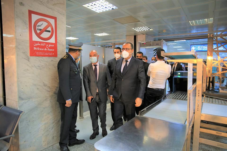 عاين رئيس الحكومة هشام مشيشي، مساء الاربعاء ، في زيارة غير معلنة إلى مطار تونس قرطاج الدولي مسلك الكوفيد الخاص بالوافدين الى تونس عبر هذا المطار والمداخل الخاصة بالمسافرين كما تفقد جاهزية الإمكانات الموضوعة على الذمة للحدّ من نطاق العدوى كالكاميرا الحرارية والممرّ الخاص بطواقم الطائرات وقاعة الانتظار.