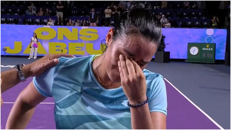وقالت انس جابر المصنفة سابعة عالميا يومها  » أنا أسفة لا أستطيع الشعور بالسعادة والعالم يعيش كل هذه الأحداث  » مضيفة باكية  » أشعر بالحزن لرؤية أطفال فلسطين يموتون كل يوم، إنّ الأمر مفجع للغاية « .