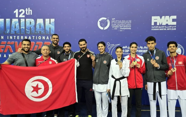 حقّق المنتخب التونسي للأكابر والكبريات 6 ميداليات (منها 4 ذهبية وفضية وبرونزية) في منافسات بطولة كأس العرب للتايكواندو التي تقام من 5 إلى 7 فيفري الجاري بإمارة الفجيرة بالإمارات بمشاركة أكثر من 1200 لاعب ولاعبة من مختلف البلدان العربية على غرار الأردن ومصر والمغرب والسعودية.