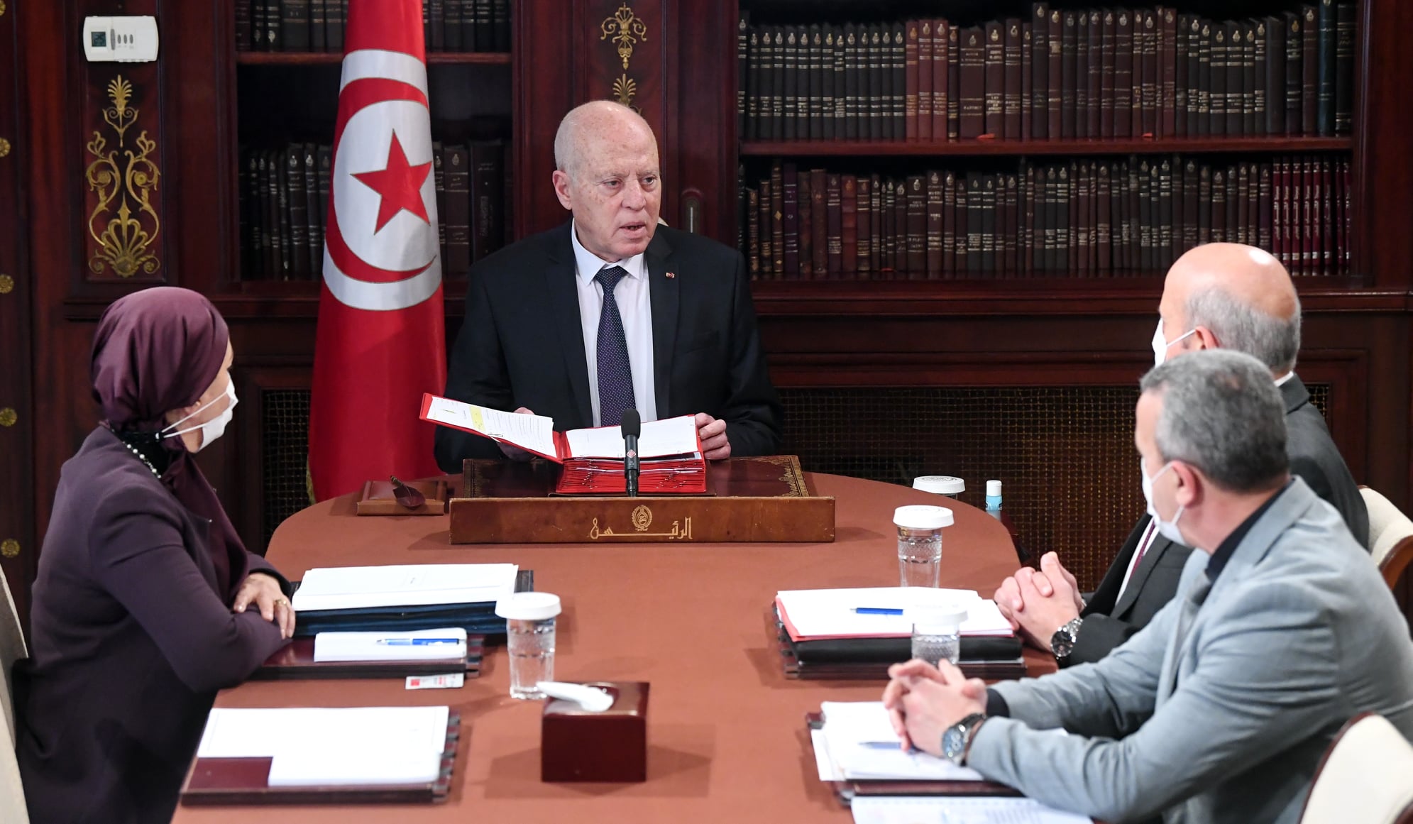 استقبل رئيس الجمهورية قيس سعيّد ، اليوم السبت 19 مارس 2022 بقصر قرطاج، ليلى جفّال، وزيرة العدل، وأعضاء لجنة العفو الخاص.