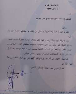 أعلنت الشركة التونسية للكهرباء والغاز، إقليم بنقردان، في بلاغ اليوم، الجمعة 08 جانفي 2021 ، عن قطع مبرمج للتيار الكهربائي بمنطقة المعمرات , العامرية , بنيري , هنشير حواشي بسبب اشغال صيانة الشبكة على خطوطها الكهربائية ، و ذلك يوم السبت 09 جانفي 2021 ، من الساعة التاسعة صباحا إلى الواحدة بعد الزوال.