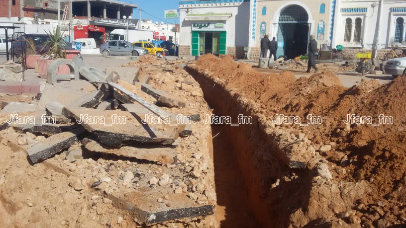 تتواصل اليوم الاربعاء 02 ديسمبر 2020 أشغال ربط محلات وسط معتمدية بنقردان بشبكة التطهير العمومي