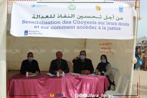 حملة تحسيسية توعوية من تنظيم جمعية عين التنموية بدعم من وزارة العدل و برنامج الامم المتحدة الانمائي المفوضية السامية لحقوق الانسان التابعة للامم المتحدة يهدف النشاط للتواصل مع المواطنين حول النفاذ للعدالة اليوم الأحد 28 مارس 2021