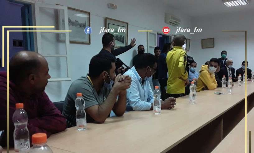 انتظمت مساء اليوم الاثنين 12 اكتوبر 2020 جلسة ببلدية بنقردان جمعت والي مدنين الحبيب شواط و السلط المحلية بمعتصمي مدينة بنقردان للنظر في وضعية المعبر الحدودي راس جدير .