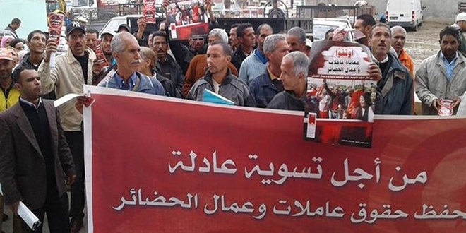 تجمّع صباح اليوم الخميس، عمال الحضائر من مختلف ولايات الجمهورية بساحة الحكومة بالقصبة للتنديد بالمماطلة في تسوية ملف عمال الحضائر، و طالب المحتجون بتفعيل محضر جلسة 28 ديسمبر 2018 ، داعين الحكومة الى التفاعل الايجابي مع مطالب المحتجين .