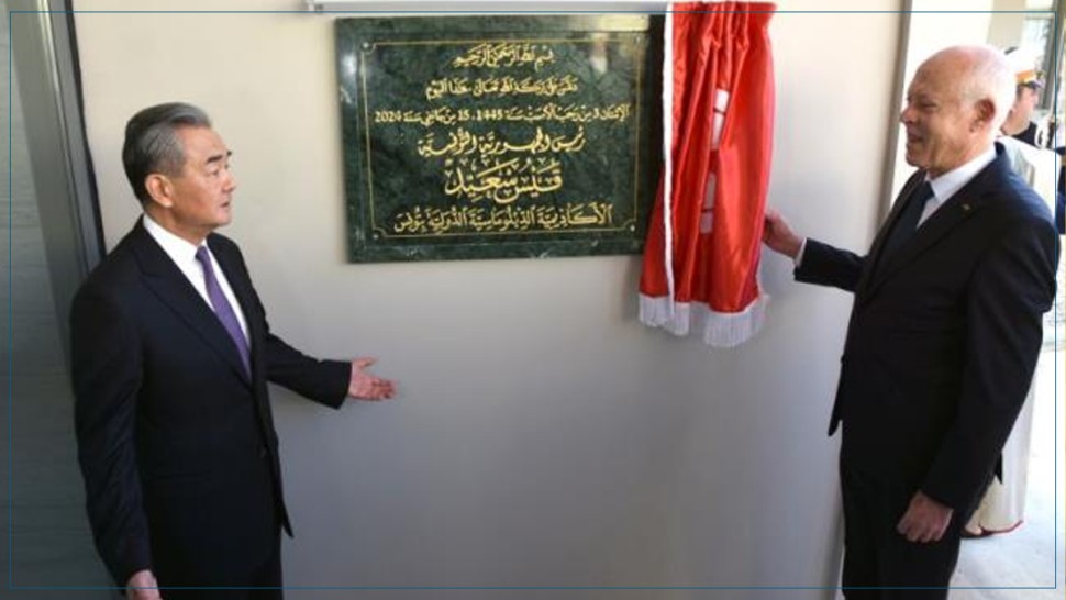 أشرف رئيس الجمهورية قيس سعيّد، اليوم الاثنين 15 جانفي 2024، على حفل تدشين مقرّ الأكاديمية الدبلوماسية الدوليّة بتونس العاصمة بحضور وزير الخارجيّة الصيني وانغ يي ووزير الشؤون الخارجية والهجرة والتونسيين بالخارج نبيل عمّار