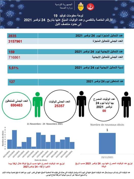 أخبار وطنية تسجيل 159 اصابة جديدة بفيروس كورونا في تونس بتاريخ 24 نوفمبر 2021 By Jfara-Fm Posted on November 26, 2021 2 second read 0 0 455 Share on Facebook Share on Twitter Share on Google+ Share on Reddit Share on Pinterest Share on Linkedin Share on Tumblr
