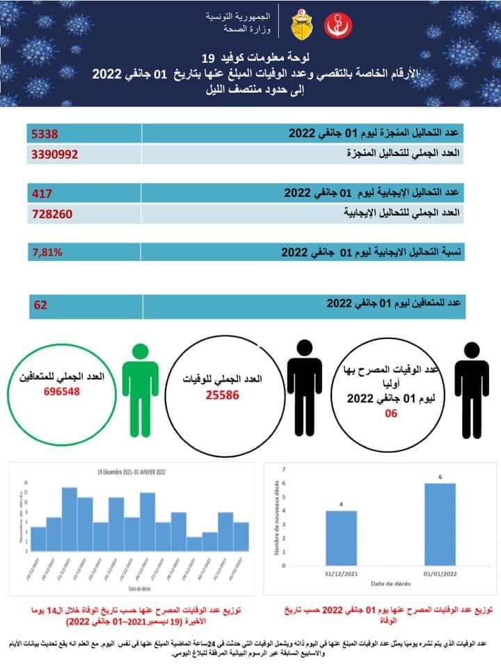 أخبار وطنية تسجيل 6 حالات وفاة و 417 اصابة جديدة بفيروس كورونا يوم 01 جانفي 2022 By Jfara-Fm Posted on January 3, 2022 0 second read 0 0 343 Share on Facebook Share on Twitter Share on Google+ Share on Reddit Share on Pinterest Share on Linkedin Share on Tumblr