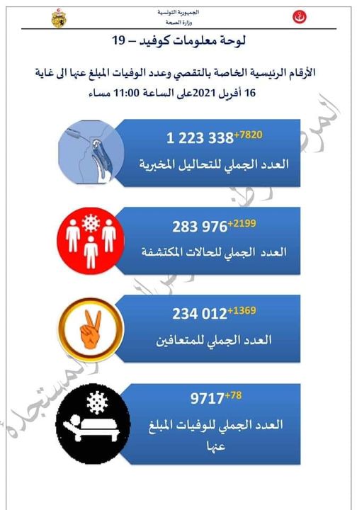 أخبار وطنية تسجيل 78 حالة وفاة و 2199 إصابة جديدة بفيروس كورونا By Jfara-Fm Posted on April 17, 2021 2 second read 0 0 532 Share on Facebook Share on Twitter Share on Google+ Share on Reddit Share on Pinterest Share on Linkedin Share on Tumblr