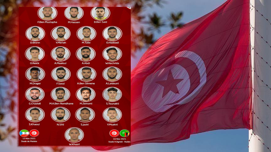 وجه مدرب المنتخب التونسي لكرة القدم منذر الكبير الدعوة الى 24 لاعبا استعدادا للمقابلتين الأخيرتين من منافسات المجموعة الثانية ضمن الدور الثاني لتصفيات كأس العالم (قطر 2022) امام كل من منتخب غينيا الاستوائية يوم 13 نوفمبر بمالابو (س 17 بتوقيت تونس) ومنتخب زمبيا يوم 16 من نفس الشهر بملعب حمادي العقربي برادس (س 20).