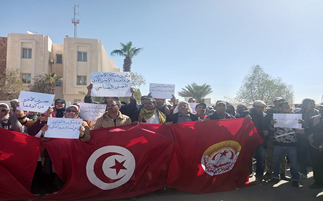 في تطاوين نفذ اليوم عدد من أعوان شركة البيئة والغراسة والبستنة وإطاراتها وقفة احتجاجية أمام مقرّ الولاية، للمطالبة بصرف مستحقّاتهم الماليّة في اجالها، وتفعيل الزّيادات في الأجور، وتصنيف الشّركة، ووضع قانون أساسي ينظّم العمل بها.