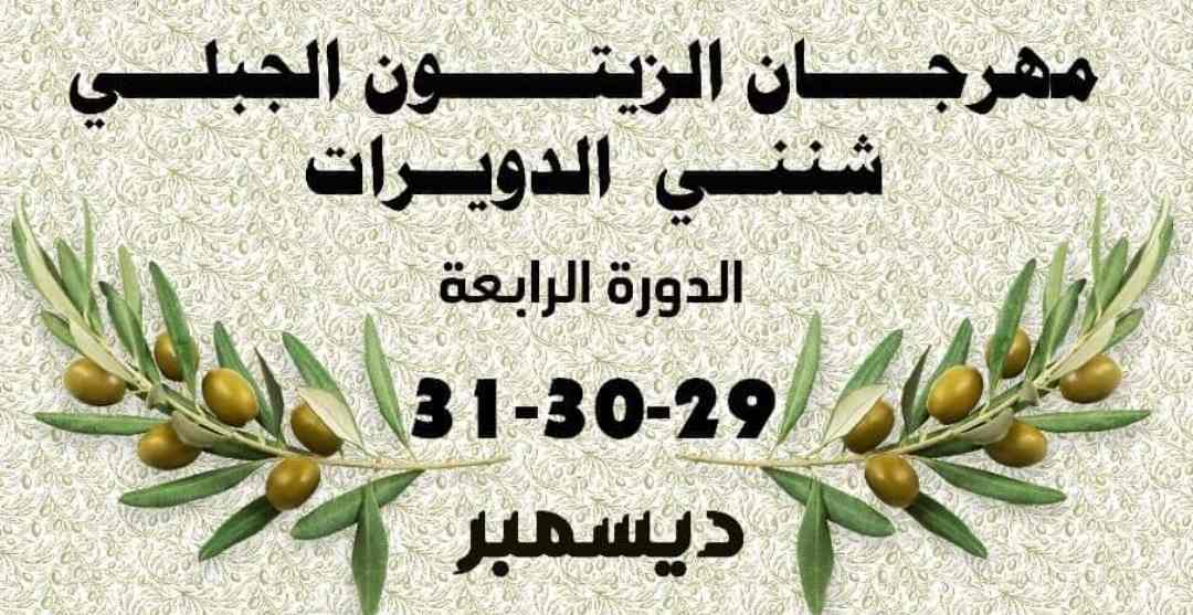 ينتظم مهرجان الزيتون الجبلي شنني والدويرات ايام 29 و30 و31 من ديسمبر الجاري في دورته الرابعة من خلال معرض للمنتوجات والصناعات التقليدية وندوات علمية وعروض تنشيطية ومسابقات في الألعاب الشعبية وجولات سياحية.