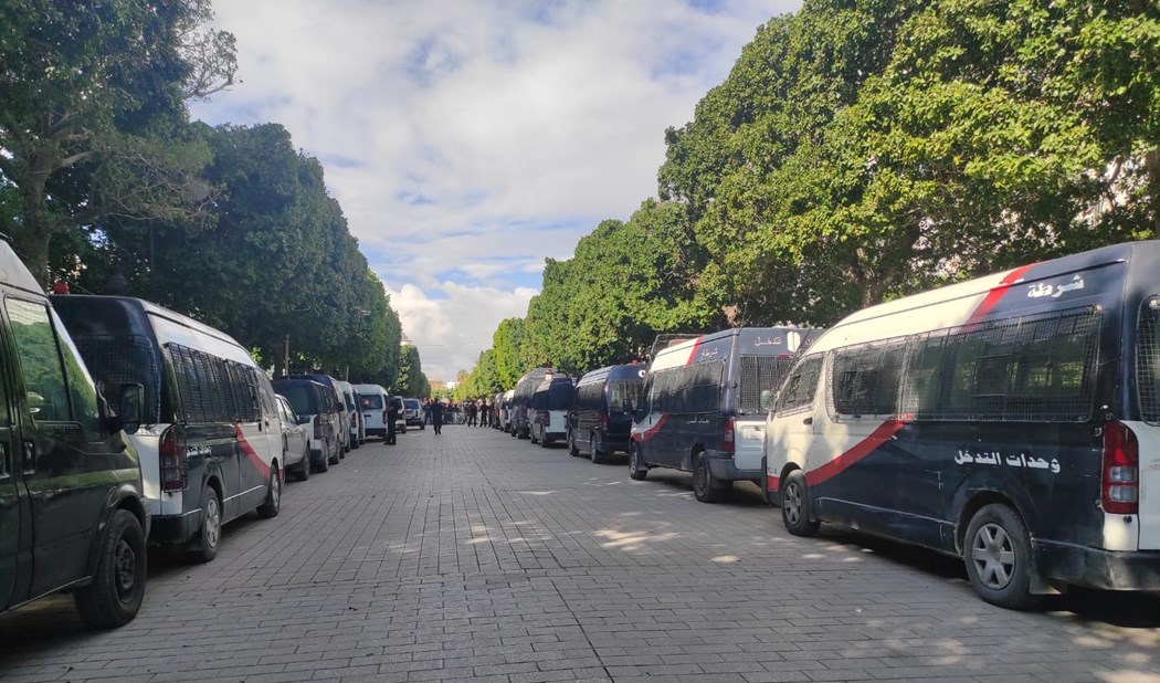 كما تم تركيز حواجز على مستوى الانهج المؤدية لشارع الحبيب بورقيبة الى حدود محطة تونس البحرية ومدخل شارع محمد الخامس كذلك على مستوى نصب ابن خلدون ، وتنظيم تفتيش لكل المتجهين الى الشارع الرئيسي بالعاصمة، الذي يحتضن ثلاث وقفات احتجاجية في اماكن مختلفة .