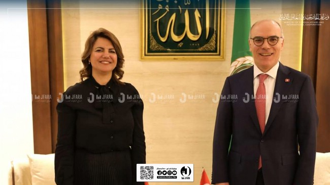 على هامش أعمال الدورة ال159 لمجلس وزراء جامعة الدول العربية ، عقد وزير الخارجية نبيل عمّار جلسة عمل مع وزيرة الخارجية والتعاون الدولي الليبية نجلاء المنقوش خصصت لمناقشة القضايا الإقليمية والدولية ذات الاهتمام المشترك، وتعزيز التعاون بين البلدين الشقيقين في مختلف المجالات.
