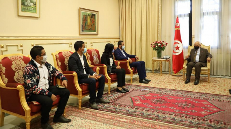 استقبل رئيس مجلس نواب الشعب راشد الغنوشي، بعد ظهر اليوم الاثنين 26 أكتوبر 2020، وفدا من النقابة الوطنية للصحفيّين التونسيّين يتركّب من الرئيس مهدي الجلاصي ونائبته أميرة محمّد وعضوي المكتب التنفيذي السيدين عبد الرؤوف بالي ورمزي أفضال، وذلك بحضور السيد ماهر مذيوب مساعد الرئيس المكلّف بالإعلام والاتصال.