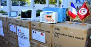 أشرف وزير الصحة الدكتور فوزي مهدي بمعية سفير فرنسا بتونس السيد أندري باران اليوم الثلاثاء 3 نوفمبر 2020، بمقرّ الوزارة على موكب تمّ خلاله تسلّم هبة من الدولة الفرنسية تتمثل في كميّات هامة من المستلزمات الوقائية الفردية الخاصة بالإطارات الصحية والتجهيزات الطبية ومستلزمات مخابر التحاليل لفائدة وزارة الصحة والإدارة العامة للصحة العسكرية وذلك في إطار دعم جاهزية المنظومة الصحية الوطنية في مجابهة جائحة كوفيد-19.