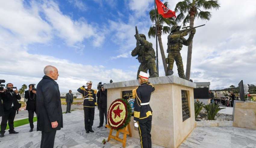 وقد أشرف رئيس الجمهورية قيس سعيد على موكب لاحياء الذكرى تولى خلاله تكريم عائلات الشهداء.