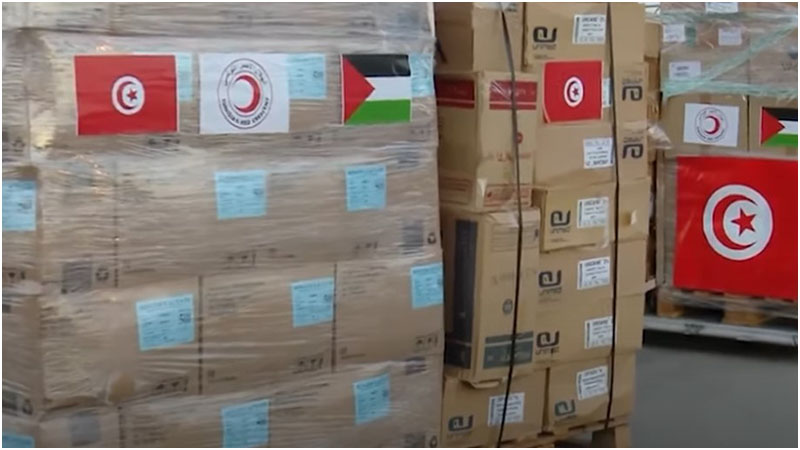 تونس ترسل طائرة مساعدات ثانية للشعب الفلسطيني محملة بأكثر من 13 طن من الأدوية والمستلزمات الطبية والأطعمة