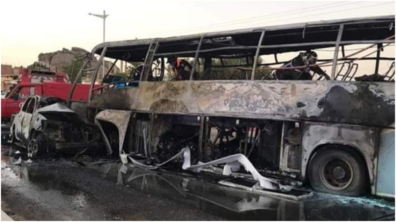 ويذكر أن حادث إصطدام جد اليوم بين حافلة لنقل المسافرين وسيارة معبأة بالوقود جنوب الجزائر نجم عنه حريق أدى إلى وفاة 34 شخصا وإصابة 9 أخرين. واشارت وسائل إعلام جزائرية إلى أن الضحايا احترقوا جراء الحادث.