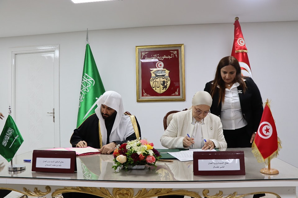 وجرى موكب التوقيع بحضور سفير السعودية بتونس عبد العزيز بن علي الصقر، وعدد من سامي القضاة وإطارات وزارتي العدل بالبلدين، وعميد الهيئة الوطنيّة للمحامين بتونس.