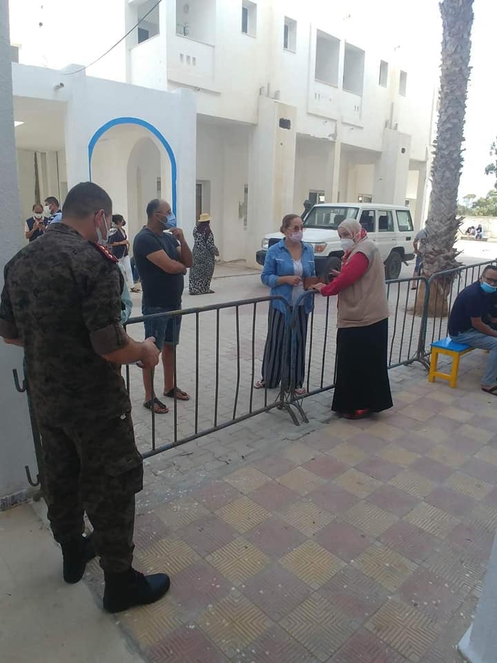 تتواصل اليوم السّبت الحملة العسكريّة للتّلقيح ضدّ فيروس كورونا بمركز التّلقيح بدار الشّباب حومة السوق جربة في يومها الثّالث وسط إقبال متوسّط.