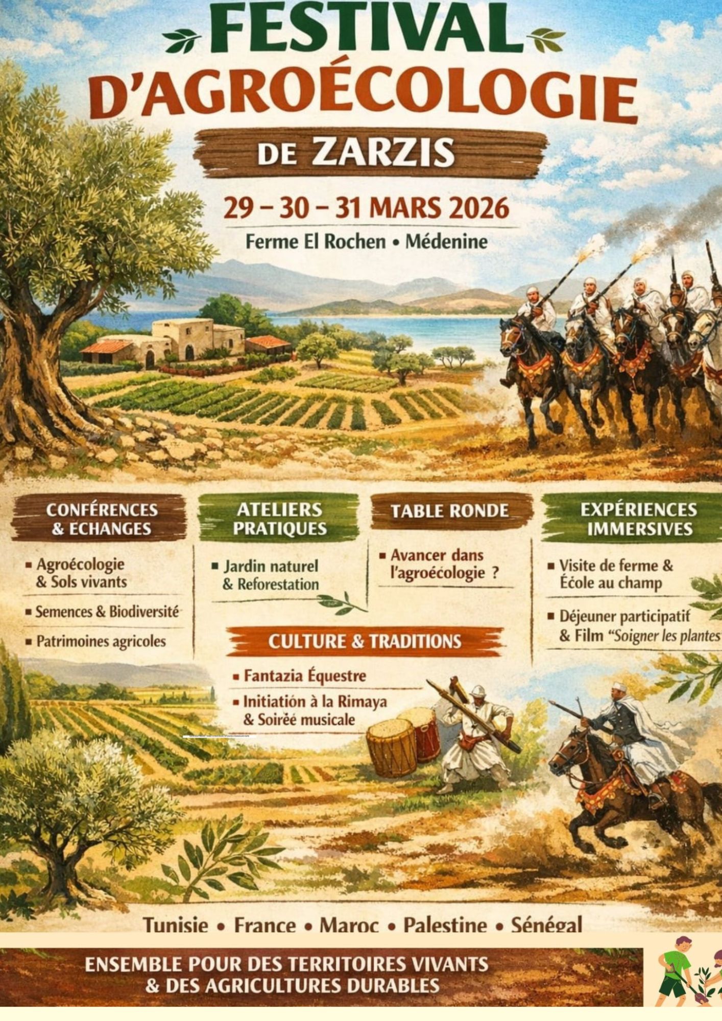 تحت شعار “معاً من أجل أراضٍ حيّة وزراعة مستدامة” تستعد مدينة جرجيس من ولاية مدنين، وتحديداً “ضيعة الروشن”، لاستضافة الدورة المقبلة من مهرجان الفلاحة البيئية، وذلك أيام 29 و30 و31 مارس 2026