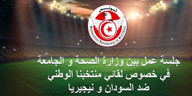 مع التطورات التي يشهدها الوضع الوبائي في تونس و النمسا و قبل الاعداد اللوجستي النهائي لمبارتي السودان بتونس يوم 9 أكتوبر 2020 و نيجيريا بالنمسا يوم 13 أكتوبر 2020 قرر المكتب الجامعي عقد جلسة عمل تنسيقية مع المصالح المختصة بوزارة الصحة و الناخب الوطني وذلك في أقرب الاجال لاتخــاذ ما يلزم من قرارات .