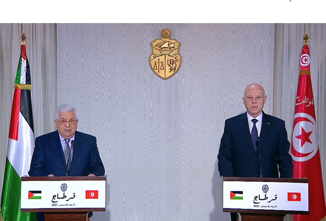 أكّد رئيس الجمهورية قيس سعيد يؤكد ، في كلمة ألقاها في نقطة إعلامية مشتركة مع الرئيس الفلسطيني محمود عباس ، أن الحق الفلسطيني مستبطن في وجدان كل حر في العالم ولن يضيع .