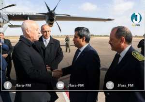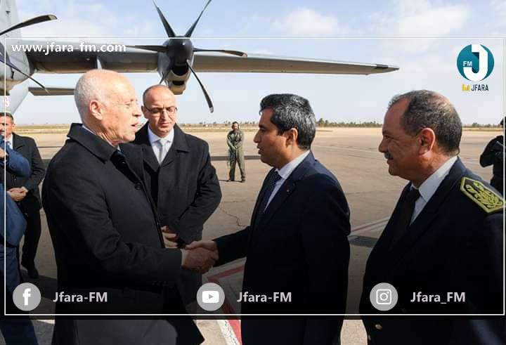 رئيس الجمهورية قيس سعيد يحل بمطار جربة جرجيس الدولي للإشراف على افتتاح المعرض الدولي للطيران والدفاع.