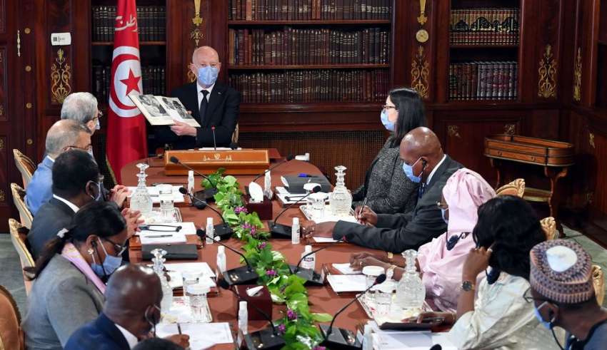 عقد رئيس الجمهورية قيس سعيّد اليوم الإثنين 1 مارس 2021 اجتماعا بقصر قرطاج مع رؤساء البعثات الديبلوماسية الإفريقية المقيمة بتونس.