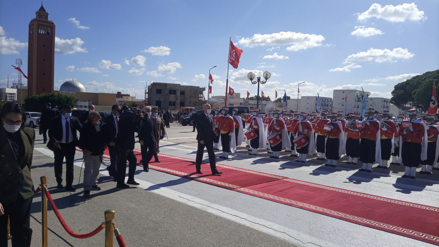 وتم فعاليات إحياء الذكرى في موكب وطني مهيب وخاشع تمت فيه تحية العلم المفدى على أنغام النشيد الوطني قبل وضع اكليل من الزهور أمام النصب التذكاري لشهداء تونس الابطال و تلاوة فاتحة الكتاب ترحما على أرواحهم الطاهرة، وذلك عقب استعراض تشكيلة من الجيوش الثلاثة أدت له التحية.