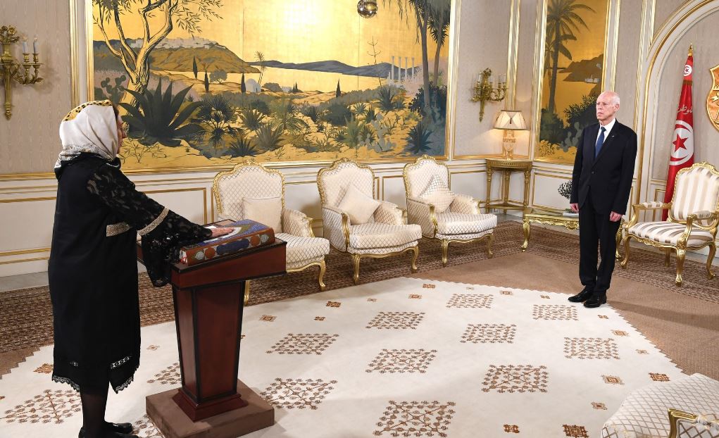 وقد انتظم موكب بقصر قرطاج أدّت خلاله الوزيرة الجديدة اليمين أمام رئيس الدولة.