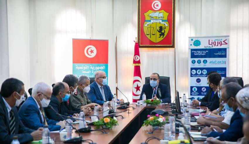 أشرف رئيس الحكومة هشام مشيشي صباح اليوم الخميس 10 سبتمبر 2020 بمقر وزارة الصحة على اجتماع اللجان الفنية المختصة في مكافحة فيروس كورونا وذلك بحضور وزير الصحة فوزي مهدي وذلك اثر تطور الحالة الوبائية بمختلف ولايات الجمهورية وارتفاع عدد الاصابات بفيروس كورونا .