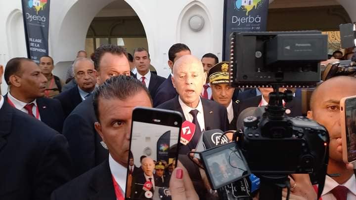 وحول الإحالات التي طالت الصحفيين على معنى هذا المرسوم ، قال رئيس الجمهورية ”هناك قضاء يحسم.. وأهم شيء هناك قضاء عادل وهناك شروط وقانون.. والمهم أن تكون هناك محاكمات عادلة.. ولا تطاول على الدولة وعلى رموزها، والأكيد أنه لا تراجع عن حرية الصحافة وحرية التعبير..”