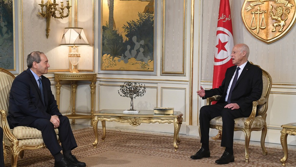 أكّد رئيس الجمهورية، خلال استقباله اليوم وزير الخارجية والمغتربين بالجمهورية العربية السورية فيصل المقداد على حرص بلادنا الثابت على استئناف السير الطبيعي لروابط الأخوة والتعاون المتينة والتاريخية القائمة بين تونس وسوريا، فضلا عن تكثيف فرص وأطر التشاور والتنسيق بشأن مختلف الملفات الثنائية في شتى المجالات.