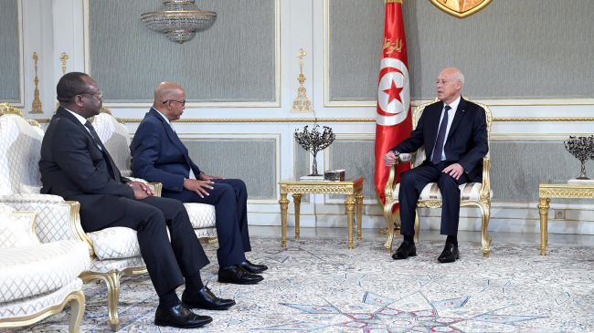 استقبل رئيس الجمهورية قيس سعيّد، اليوم الثلاثاء 20 ديسمبر 2022 بقصر قرطاج، آسان ماياكي، رئيس بعثة الملاحظين للانتخابات التشريعية التابعة للاتّحاد الإفريقي، ورئيس دائرة الديمقراطية والانتخابات والدستور بالاتحاد الافريقي كاليكست أرستيد مباري.