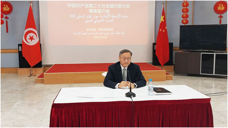 أكد سفير جمهورية الصين الشعبية في تونس جانغ جيانقوا خلال مؤتمر صحافي اليوم الجمعة 28 أكتوبر 2022 أن شركات صينية ترغب في الاستثمار في تونس نظرا لموقعها الجغرافي المتميز الذي يسهّل التصدير نحو الدول الإفريقية جنوب الصحراء والدول الأوروبية.