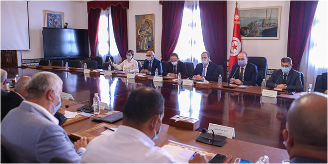 أشرف رئيس الحكومة إلياس الفخفاخ، صباح اليوم الجمعة 05 جوان 2020، بقصر الحكومة بالقصبة على جلسة عمل مشتركة جمعت وفدا من اعضاء الحكومة ووفدا عن أعضاء المكتب التنفيذي للإتحاد التونسي للفلاحة والصيد البحري برئاسة عبد المجيد الزار.