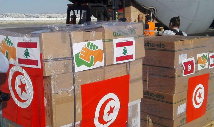 تم صباح اليوم الخميس بالمطار العسكري بالعوينة، شحن طائرتين عسكريتين بمواد أساسية غذائية وأدوية ومستلزمات طبية موجهة نحو لبنان تضامنا مع هذا البلد الشقيق الذي عاش على وقع انفجار عنيف يوم الثلاثاء الماضي هز العاصمة بيروت و اسفر عن سقوط عشرات القتلى وآلاف الجرحى.