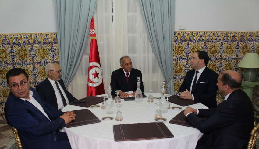 إلتأمت مساء أمس الجمعة 20 ديسمبر، جلسة مشاورات خاصّة جمعت رئيس الحكومة المكلف الحبيب جملي مع راشد الغنوشي رئيس حركة النهضة، ويوسف الشاهد رئيس حركة تحيا تونس، ومحمد عبو الأمين العام للتيار الديمقراطي و زهير المغزاوي الأمين العام لحركة الشعب.