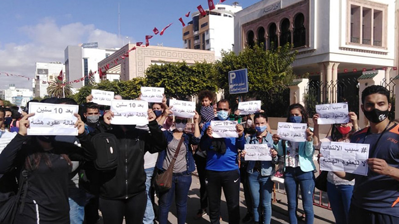 نفّذ عدد من خريجي المعاهد العليا للرياضة والتربية البدنية المعطلين عن العمل  اليوم الأربعاء 2 جوان 2021، وقفة احتجاجية أمام مقر وزارة الشباب والرياضة والتربية البدنية للمطالبة بانتدابهم وسد الشغورات المقدرة بـ2175 شغور في المدارس الابتدائية والاعدادية والمعاهد الثانوية، منددين بتجميد الانتدابات منذ 2015 وعدم تفاعل وزارة الاشراف مع مطالبهم .