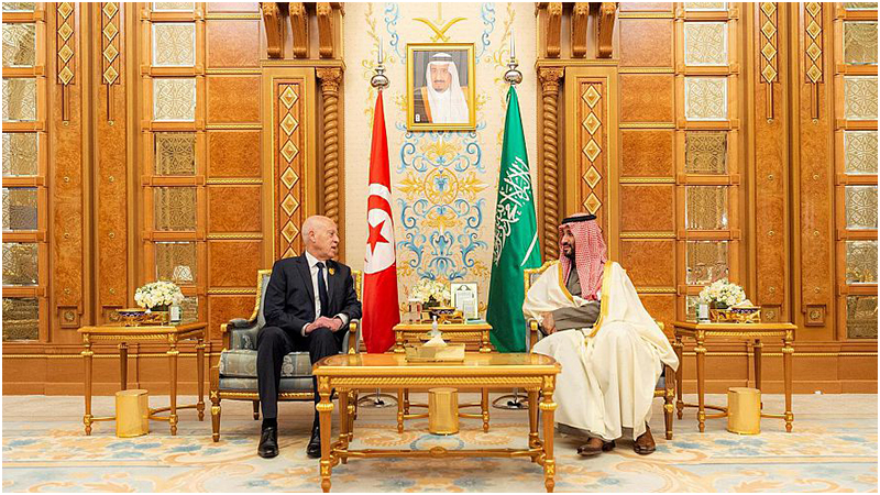 ألتقى رئيس الجمهورية قيس سعيد، مساء اليوم الجمعة، بولي العهد السعودي محمد بن سلمان وذلك على هامش انعقاد قمة الرياض العربية الصينية للتعاون والتنمية.